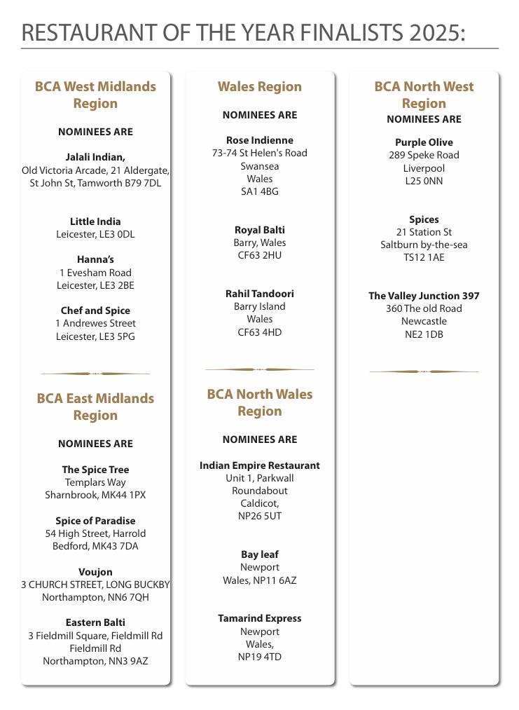 RESTAURANT OF THE YEAR FLINALIST 2025